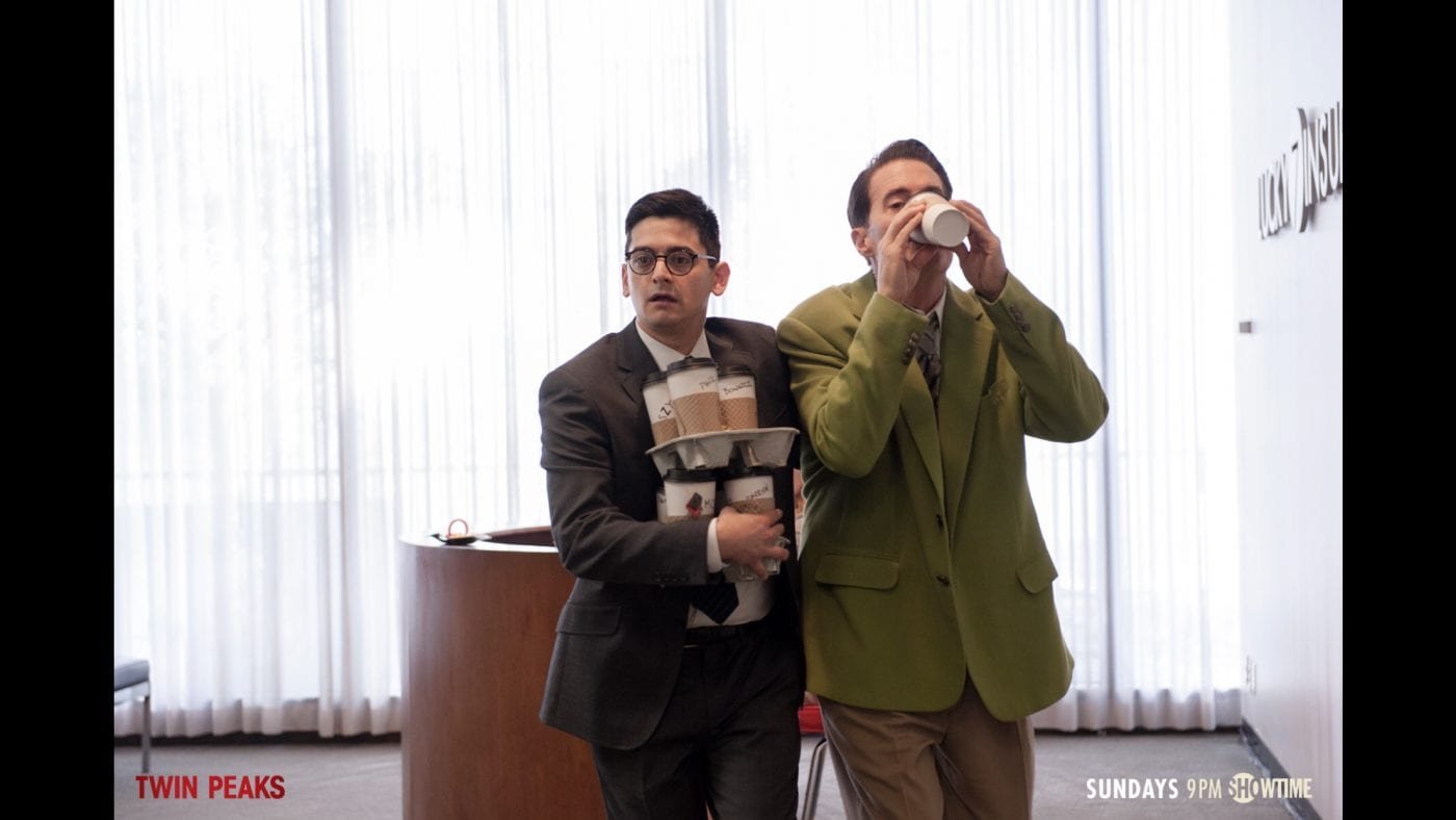 The Cowardly Lion role is up for grabs, from the aforementioned Supervisor Burns to Sonny Jim to one of the goons Janey-E gave the what-for to, but I’m going to pick the quintessential office beta-male Phil Bisby since he’s Cooper-Dougie’s coffee connection. Phil seems to lack the cutthroat gene and for the sake of this argument you could credit him with a lack of courage.