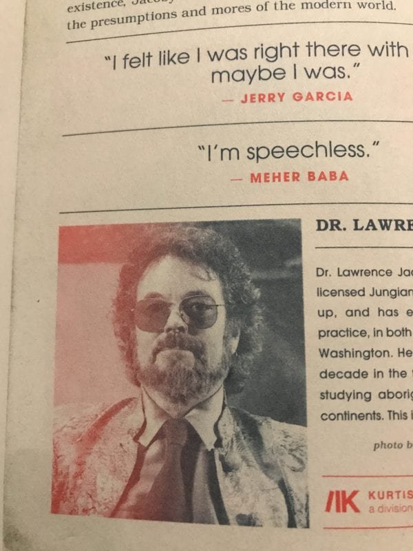 Jacoby was guided by shamans through a ceremony that began when he drank something that undoubtedly tasted like scorched engine oil, and then he lost all sense of time and place while he met cold unfeeling giants. When he knew he was back in his own body, I believe he’d completed a Lodge trial.