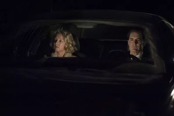 Dale Cooper exits the Lodge through the curtains and comes out in Ghostwood Forest, the same place he entered the Lodge 25 years ago. This is how it was SUPPOSED to happen from the beginning. No Dougie, no ‘evolution of The Arm’, no Bad Cooper. As an added bonus, Laura Palmer is possibly still alive in this reality as well, thanks to Cooper leading her away from the meeting with Jacques and Leo in the woods. Ok, so she did disappear screaming into the woods and we don’t know what that was all about but at least she’s not a corpse on a rocky beach anymore. Diane is waiting in the woods as Cooper returns to the real world. How did she know to be there? He assures her that it’s really him and kisses her, then they head off on a road trip to…somewhere. They drive exactly 430 miles through desert plains until they reach their destination — the middle of the road near a bunch of power lines. Cooper tells Diane to kiss him because ‘once we cross, it could all be different.’ They kiss, they drive, they cross. Day suddenly becomes night and they drive to a rundown motel in the middle of nowhere. When Cooper goes inside to the front desk, Diane waits in the car and sees herself standing outside the motel. Ummmm…ok? Diane and Cooper enter the motel room and proceed to have slightly passionate yet mannered sexual intercourse to the Platters’ song from back in episode 8. Cooper sits down and Diane rides him and I can’t tell you how odd it felt to be watching a Cooper/Diane sex scene in the final hour of Twin Peaks. My thoughts at the time: 1 – Why are they having sex? 2 – Dale doesn’t seem to be very into it. 3 – Why is she obscuring his face with her hands? (admittedly, many women have tried to hide my face with their hands during sex, but I had always assumed it was so that they could pretend they were having sex with anyone else but me) 4 – Yep, I think she just had an orgasm. 5 – Laura Palmer probably would really like to be here for this, it’s right up her alley. 6 – I can’t believe I just watched Dale Cooper bang his secretary.