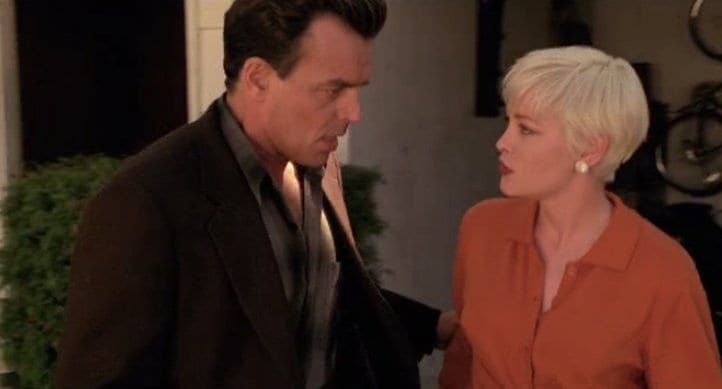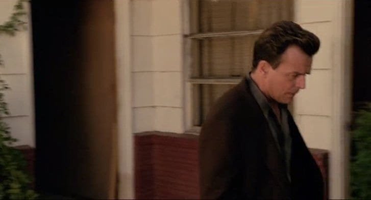 4. Leland turns and runs into Teresa, who’s coming out of the kitchen with ice cubes. He tells Teresa the meeting is off but gives her the money. Behind them, a garage can be seen.