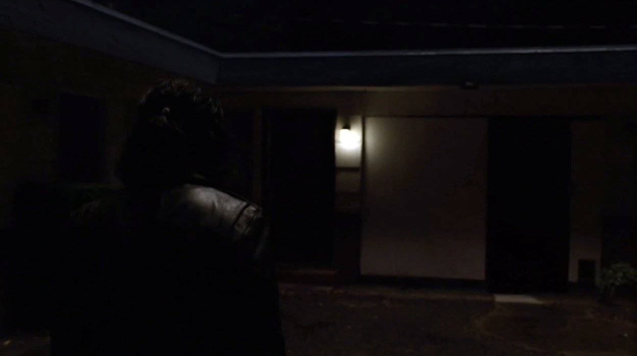 Do you spot the subtle but obvious and big difference, apart from the house looking completely different? From the outside, the room that Cooper exits has its window on the other side of the door than it had a moment ago on the inside. The door opens the other way than it did the second before when Cooper was still inside. Then, the door had its knob on his right-hand side, yet he closes a door hinged on the other side of the door frame than before. It seems like that for Cooper, exiting the motel room marks the time of his “passing”. Diane, on the other hand, “passed over” earlier that night or morning, turning into Linda. It makes me wonder what had happened if Cooper would have stayed inside and looked out the window. What would he have seen?
