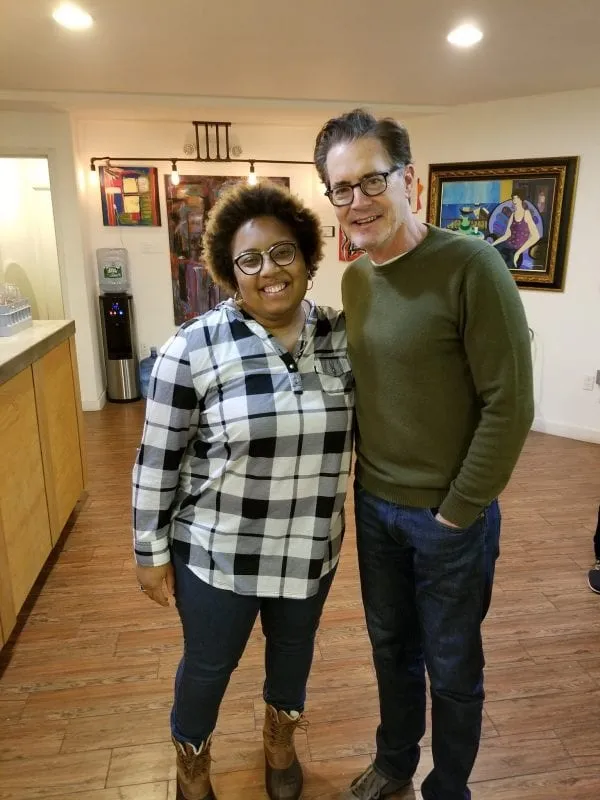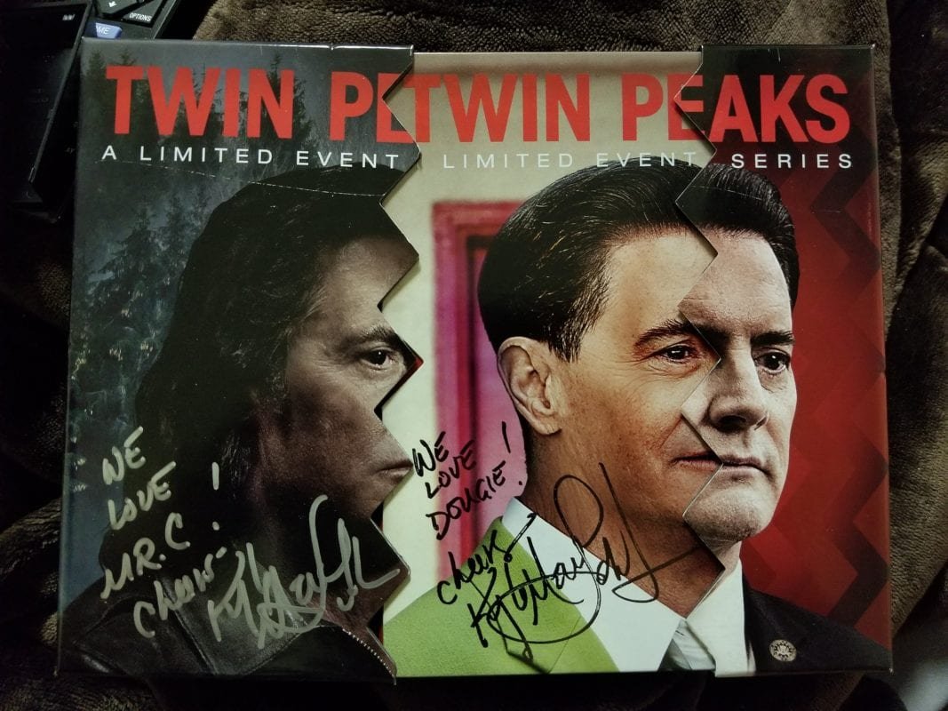 I met Kyle in the summer of 2017 at a wine tasting at USQ Wines & Spirits in Manhattan and again in the winter of 2017 at a wine tasting at Some Good Wine in Manhattan. The first time I met him I was really concerned about passing out and making a huge fool of myself in front of everyone. Surprisingly I wasn’t afraid I would pass out because I was about to meet the man who brought Dale Cooper to life, but because I had been dealing with a bout of vertigo for a few weeks that wouldn’t let up. I somehow managed to stay upright while waiting in line, but the vertigo along with some sips of wine while waiting made the experience quite dreamlike. From what I can recall, when my time came to meet him, I said, “Hello Mr. MacLachlan. I’m a huge fan of yours and of Twin Peaks…can you tell?” I was referring to the black and white chevron dress and red lipstick that I was wearing. He enthusiastically said, “Yes I can! Actually, that was the first thing I noticed when you walked up!” He signed the bottle of wine that I bought, and I told him how amazing the experience had been watching Twin Peaks 2017 so far; I believe up to about episode 9 or 10 had aired by then. We took a picture and then I asked him if he would mind signing my copy of TheSecret History of Twin Peaks. He gladly agreed, and while he was signing I told him how I had always wanted to tell him personally how great of a singing voice he has as demonstrated in Portlandia. He laughed and thanked me. He then explained how nervous he was doing that scene because he had to come up with the melody and the words, but that he thought it turned out ok. I assured him it turned out hilariously wonderful and that he sounded great. He thanked me again. He flashed that million-dollar smile, I said thank you for everything, I shook his hand, and said goodbye.