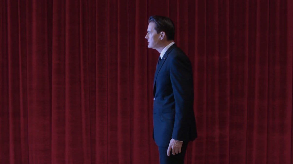 Cooper looks nonplussed (he must have been expecting to see forest) but then seems to remember that he can go out once Mr. C comes back in. It looks like that’s what’s going to happen and Cooper will go through those curtains—maybe to where Hawk is waiting, since that’s where Cooper went in originally.