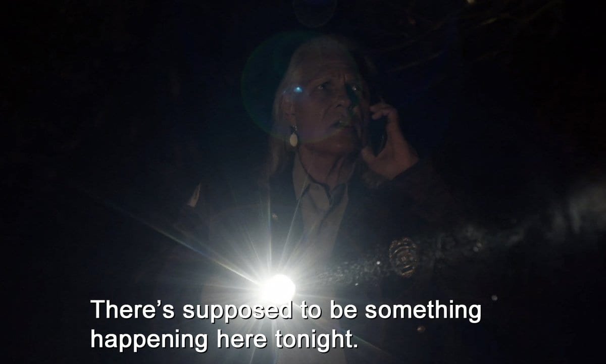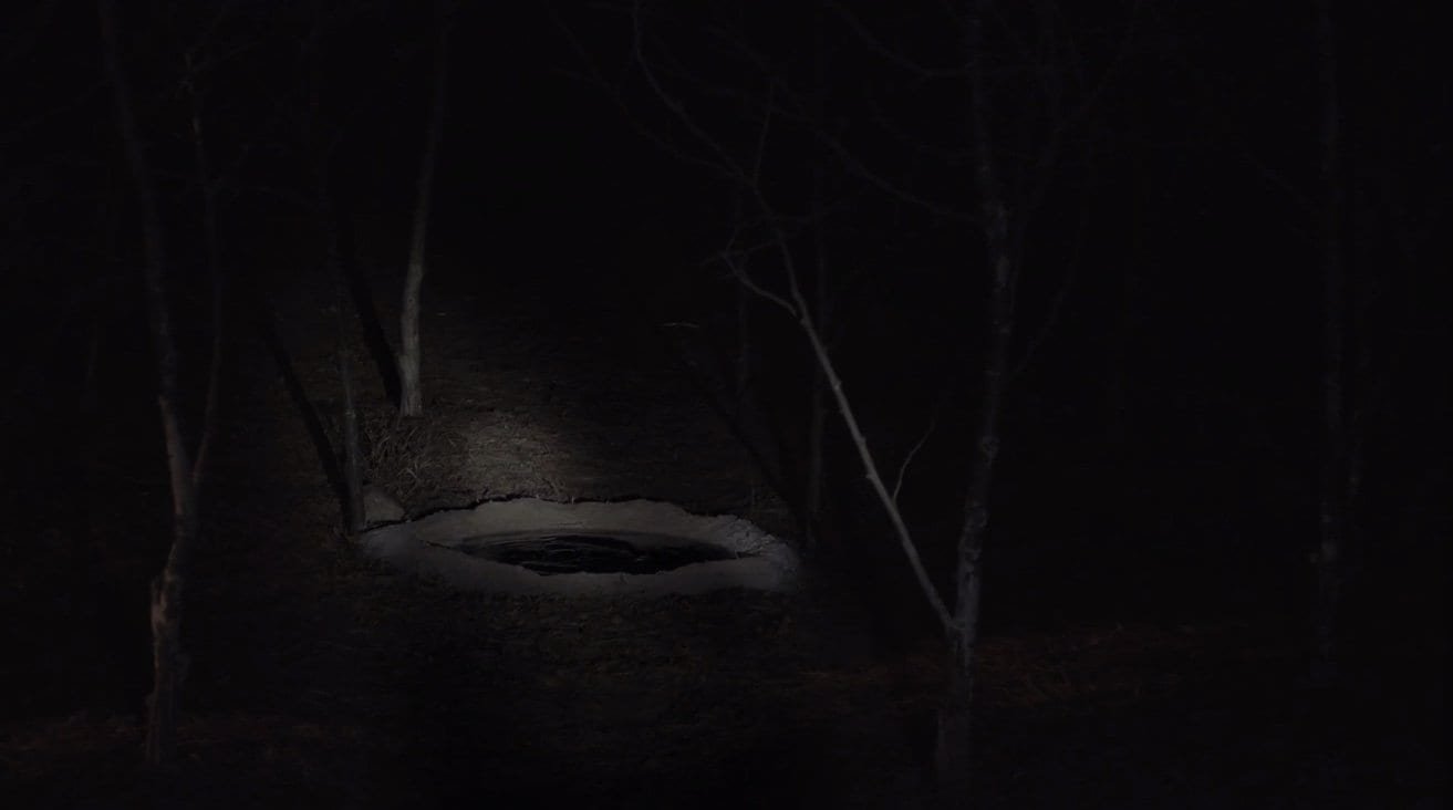 The series of events I’ll begin with all take place in Part 2 of The Return. It starts with Hawk walking at night in the Ghostwood Forest with his flashlight. The Log Lady calls him and they talk for a moment. Hawk says that something is going to happen, and he promises the Log Lady that he will tell her about what he’ll find. After they hang up, Hawk reaches the Sycamore trees by Glastonbury Grove. The music in this scene is the exact same as when Agent Cooper entered the Black Lodge 25 years earlier at the very same spot. But the scene ends, and we never really an explanation for it, nor is it ever mentioned again. This was always strange to me. The Hawk by Glastonbury Grove scene seems to be out of context, like unfinished business – unless… Unless it’s actually part of a context already.