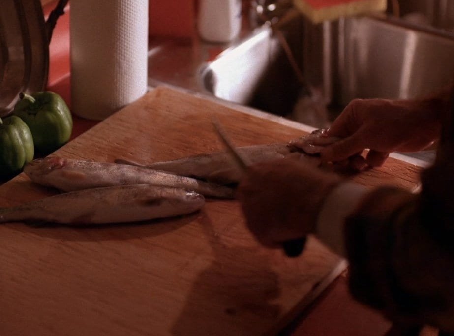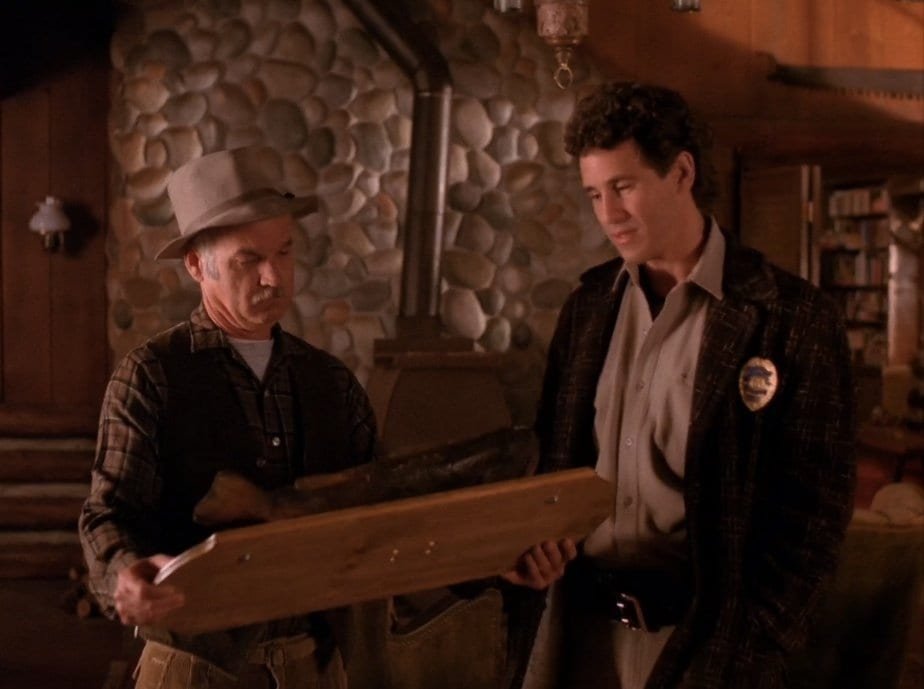 There it is! Seen many times throughout the first two seasons, this big fish gets to be a witness to a lot of drama acted out beneath it. That is until Ben’s fish is taken down and clumsily carried away by an unnamed deputy. Why did that happen, by the way? Who knows! It might just be one of the lesser-known little mysteries of Twin Peaks. But all in all, it’s not about this fish. Or… Is it about this fish?