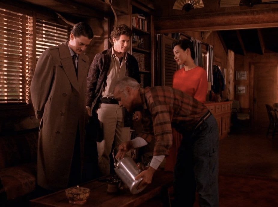 the log lady provides tea and biscuits in her cabin