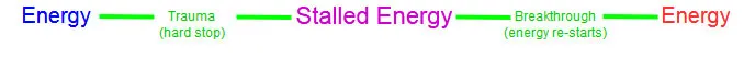 Trauma freezes energy. It stalls it to a hard stop. Stagnation, the force that puts Norma and Ed into Season 3, sets in. In terms of the energy flow as described earlier, it looks like this:
