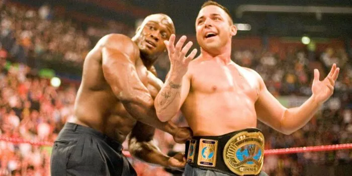 Yet, when “The Samoan Savage” headed to the top rope he would be interrupted by rival Bobby Lashley. After hitting a prone Umaga from his perch, he would deliver a chair shot to his skull, followed by a spear. Lashley then placed Santino on top of Umaga for the three count for a shock title switch.