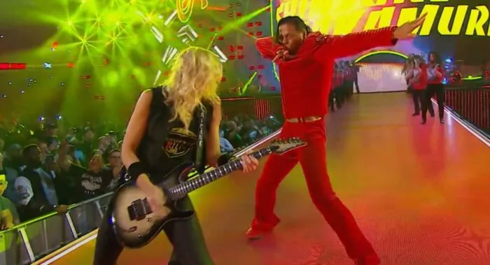 At WrestleMania 38, Nakamura again was defeated by The Usos, losing to them in another SmackDown tag title match. On this occasion, however, Nakamura teamed with guitar-playing partner Rick Boogs. The match was thrown into chaos when Boogs injured his leg, tearing his quadricep and patella, and ripping the tendon off the bone. Undoubtedly hindering the match, it took it, in his words “from the highest of highs to the lowest of lows.” Once that happened, The Usos quickly won, hitting Nakamura with the 1D.