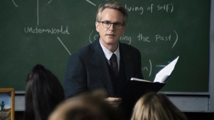 The motives (where they exist) of The Moaner, Billy and Professor Gelson/DKO also become more defined with each film. The Moaner, as far as the audience can tell, has no motive whatsoever. He just appears as a limiting force against a group of women coming into their own. Billy, of course, is motivated by years of abuse at the hands of his mother, but more specifically his desire to reclaim control from the women of DAK. We don’t have to guess at DKO/Gelson’s reasons. They spell it out. They are bent on controlling women, but that motive can be broken out even more. For the DKOs, it is that the Mus (and Riley specifically) have dared to complain about a pattern of rape and sexual assault that DKO engages in as a matter of course. When complaints lodged against the fraternity (and specific brothers) result in public embarrassment, the group doubles down. It’s not really about potential consequences, and it’s certainly not about sex; it is about having presumed, unearned authority challenged. Gelson exhibits the same hostility towards accountability in even its mildest forms: instead of having an open discussion with his class about why he doesn’t include works by women in his syllabus, he castigates them with a gotcha quote from Camille Paglia (a delightfully pointed choice by Takal). It is the concession by the university that these challenges may have merit, demonstrated by the moving of the Hawthorne bust, that is the final straw.